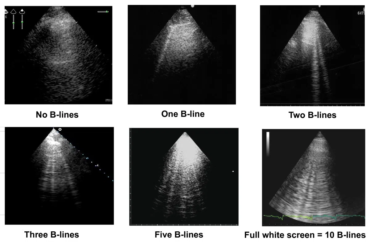 Rappel : jusqu'à 3 lignes B par champ = physiologique. +3 lignes = pathologique.