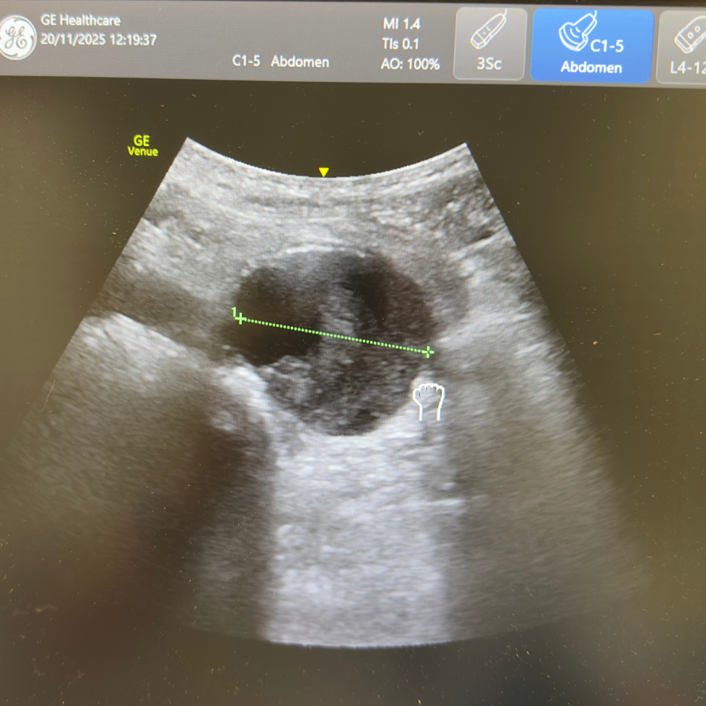 - Rupture : hématome rétro-péritonéal hétérogène, parfois difficile à distinguer ; rechercher un épanchement libre.